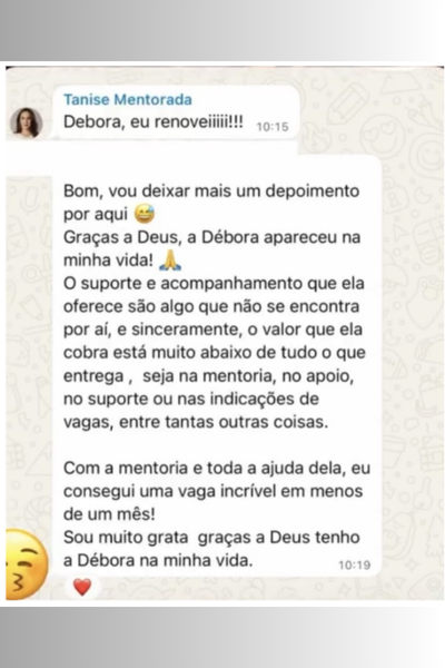 Meu nome é Débora Marques, ex CLT, mulher, mãe e esposa que em 2019 cansou da vida de escravidão, de deixar o filho na creche 5h da manhã e buscar 18h, de trabalhar doente e esgotada para colocar dinheiro no bolso do patrão, e decidiu migrar para o digital com serviços comerciais.